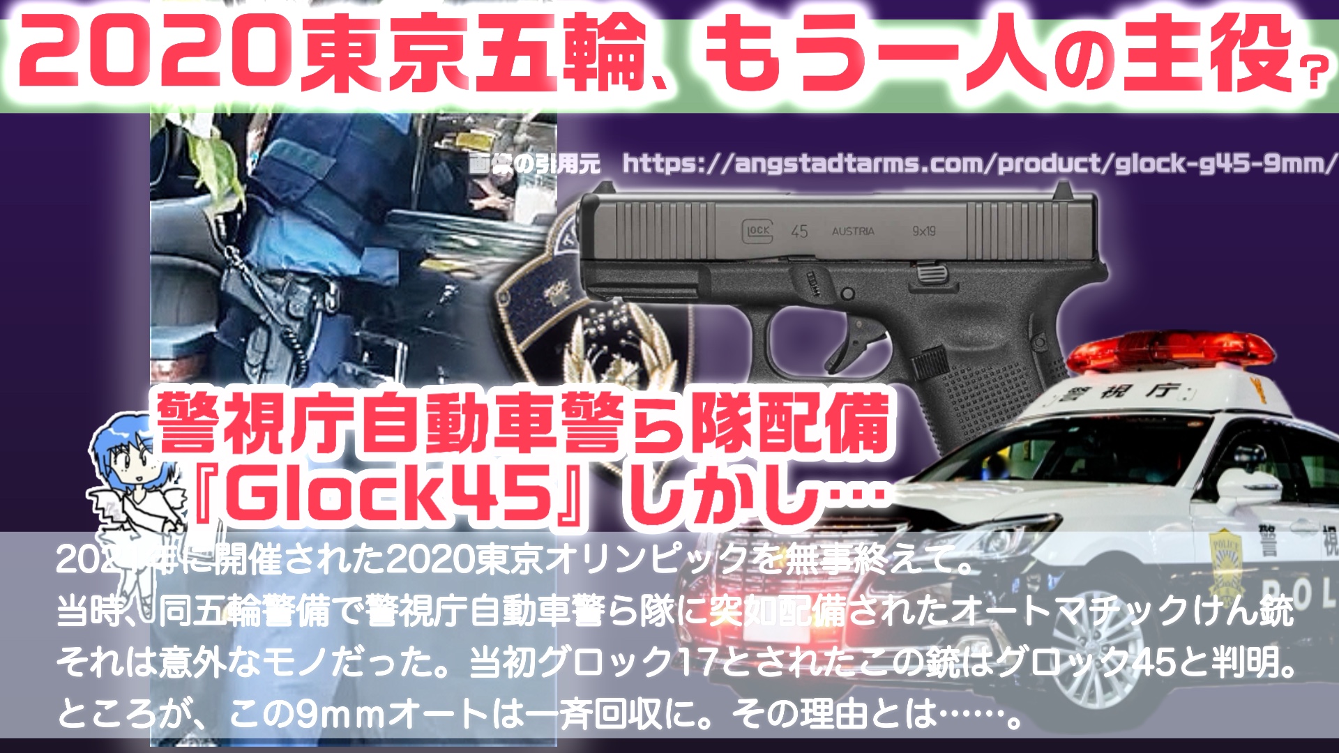 ついでに言うと、日本のお巡りさんも、東京オリンピックの警備限定で「グロック45」を試験的に導入していたらしい。これは9ミリ口径ながらもグロック19サイズのコンパクトスライド、つまり威圧感バッチリの都会派グロックである。ちょっとモルダーごっこできるな。